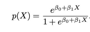 So logistic regression is more appropriate when the response is binary, and the equation to use is below. Note the sigmoid function, which generates the S shaped curve.